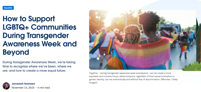Salesforce hits the woke trifecta with its promotion of transgender ideology, discriminatory polices, and climate activism.