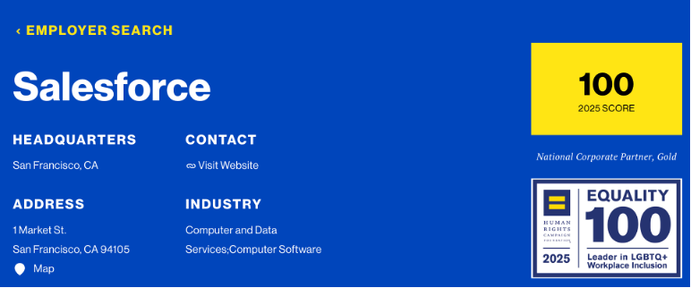 The company touts a Human Rights Campaign (HRC) score of 100.