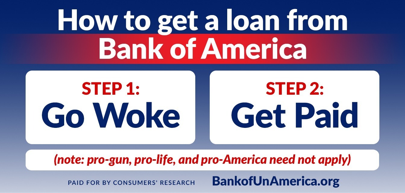 Tell Bank of America to serve its customers and not woke politicians. Call them now: 1 (800) 432-1000 or reach out to them on Twitter to let them know you disapprove of their woke agenda.