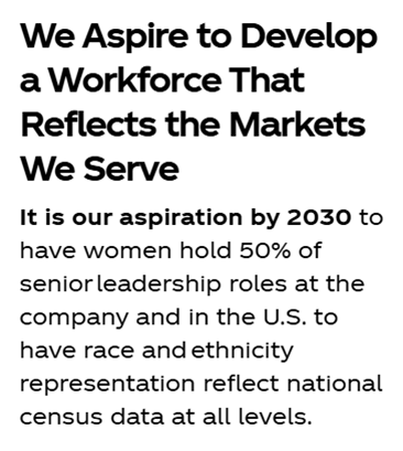 In Coca-Cola’s Business and Sustainability Report, the company says that it aspires to have women hold 50% of its leadership roles by 2030 and the company wants a workforce that reflects census data on race.