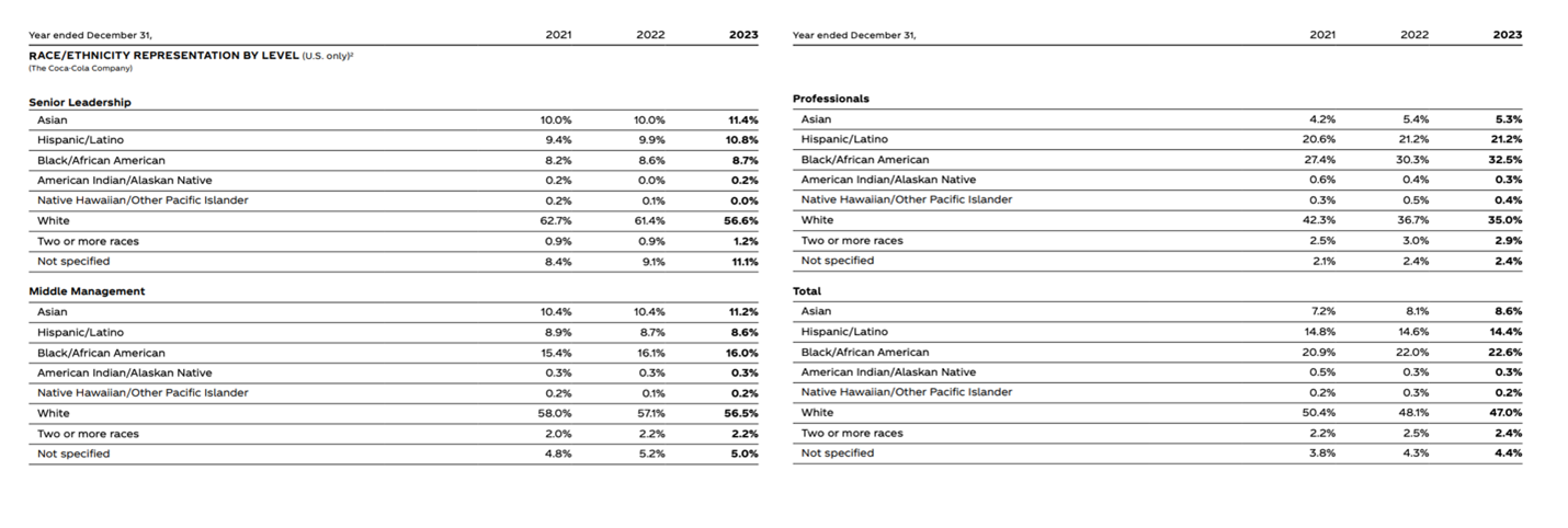 Coca-Cola also published a DEI progress report to show its successes in DEI policies.