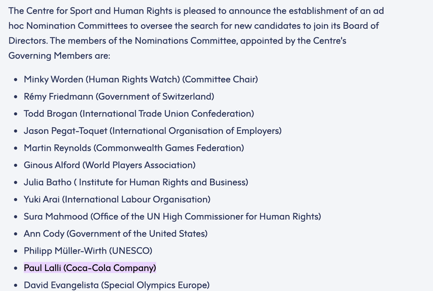 To add to CSHR and Coca-Cola’s close partnership, Coca-Cola’s VP of Human Rights, Paul Lalli, was announced as a member of CSHR’s Board Nomination Committee. Two of CSHR’s current board members previously worked in management at Coca-Cola.
