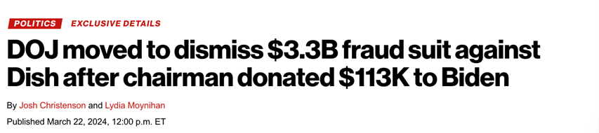 Charles Ergen’s donor activity sparked controversy in 2024 when the Biden administration’s Department of Justice dropped a $3.3 billion fraud suit against DISH after he donated $113,000 to Biden’s reelection efforts. The DOJ’s move to dismiss the case came weeks before the agency planned to depose Ergen.