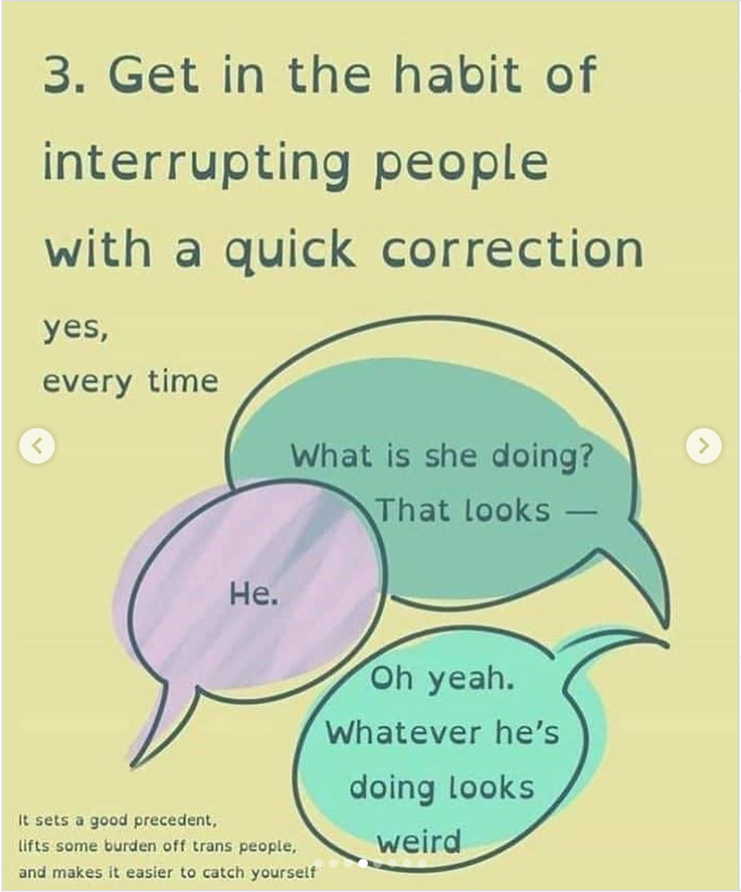 The DISH Women’s Network (DWN) posted on Instagram, “getting pronouns correct and respecting others’ gender identities is so important,” and included multiple tips on how to get pronouns right, including “get in the habit of interrupting people with a quick correction.”