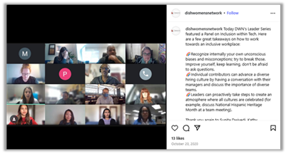 In 2020, DWN led a panel discussion on inclusion in tech where employees were encouraged to recognize their unconscious biases, have conversations about diversity, and create atmospheres where all cultures are celebrated.