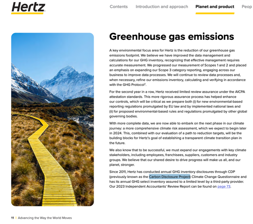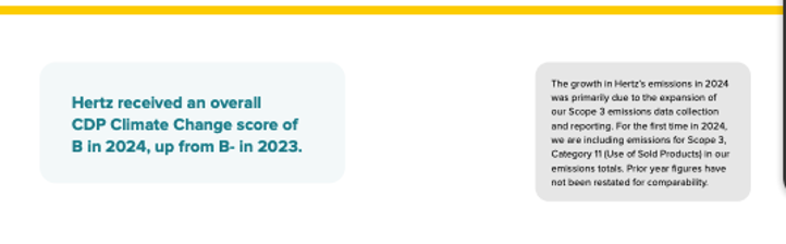 In the 2024 Hertz Sustainability and Impact Report, Hertz highlighted an improved climate score from the CDP, showing its continued commitment to a radical climate agenda.