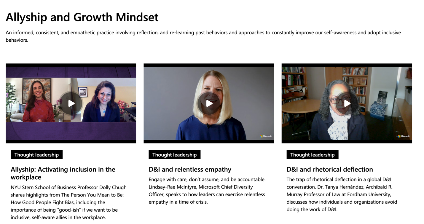Microsoft also hosts an “inclusion journey library” to help individuals adopt inclusive mindsets.